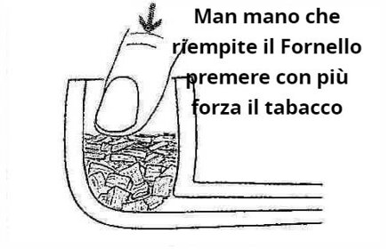 1 - CARICAMENTO Caricare a piccoli pizzichi il tabacco nella Pipa, pressando sempre maggiormente [ Io presso molto e prima di Fare l'ultima pressata, batto la pipa con le mani per smuovere le parti vuote, cosicché avrò il Tabacco nel Fornello Compattato al Meglio ]