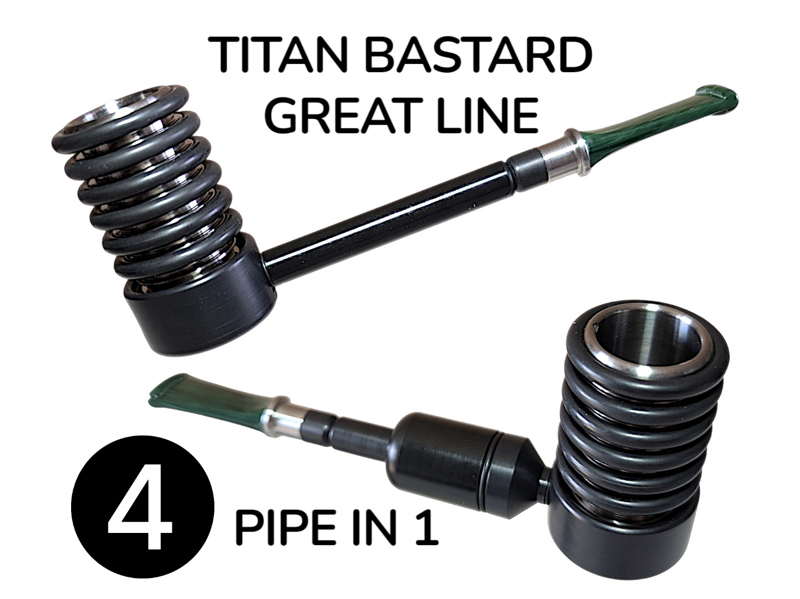 Job Pipe Titan Bastard Great Line Set 4 Pipe in 1 4 Stili di Fumata nel Braciere in Purissimo titanio più Capiente e imponente ! 1 - Dritta Classica2 - Booster Medium - Reverse Calabash 3 - Churchwarden Reverse Calabash 4 - Short o Brucia Naso